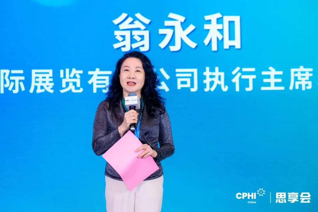上海博华国际展览有限公司执行主席、常务副总经理翁永和,作为大会主办方致辞。她提到,CPHI China始终以敏锐视角聚焦新药发展前沿动态,并打造出以创新药为主题的品牌大会—CPHI思享会。历经5年的深耕细作与专业积淀,思享会汇聚了各方创新力量,一路不断成长,今年更是加入了上海国际生物医药产业周。未来,CPHI思享会将进一步集结全球制药产业先锋力量,打通“产学研医”的合作生态链路,助力医药产业在创新浪潮中聚链前行、领航增长,为全球医药健康事业贡献更多中国智慧与中国方案。