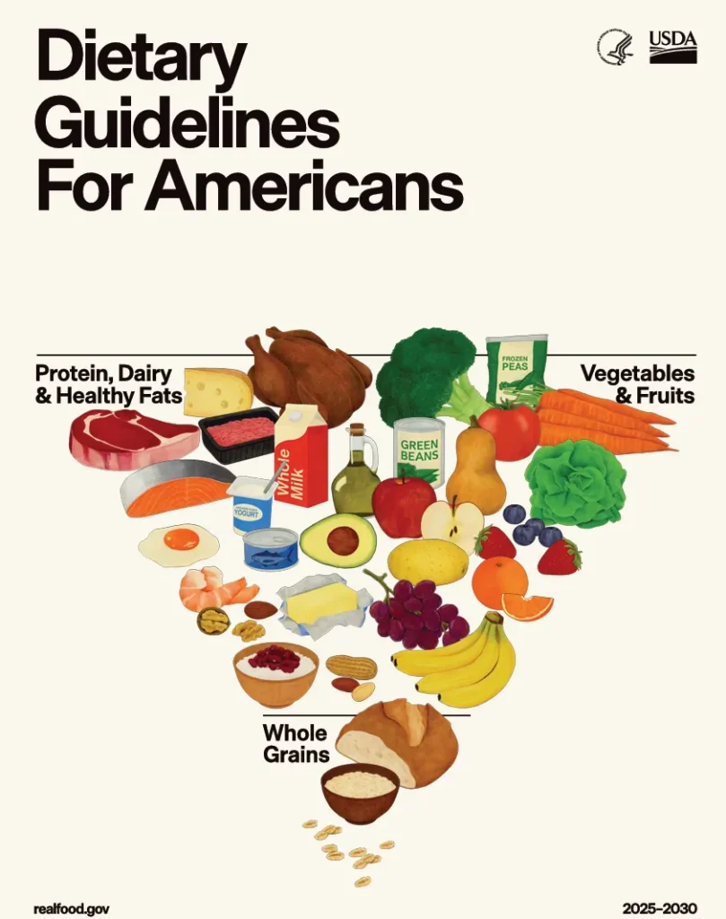 这份《美国膳食指南(2025-2030年版)》是一份由美国农业部和卫生与公众服务部联合发布的官方营养政策文件。其核心理念:回归真实食物(REAL FOOD)。可在其官方网站 RealFood.gov了解