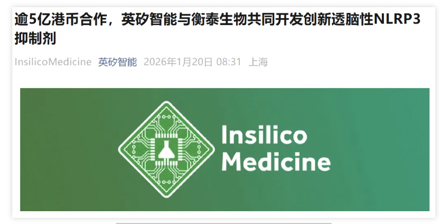 图1. 英矽智能与衡泰生物达成合作,来源:公司官微