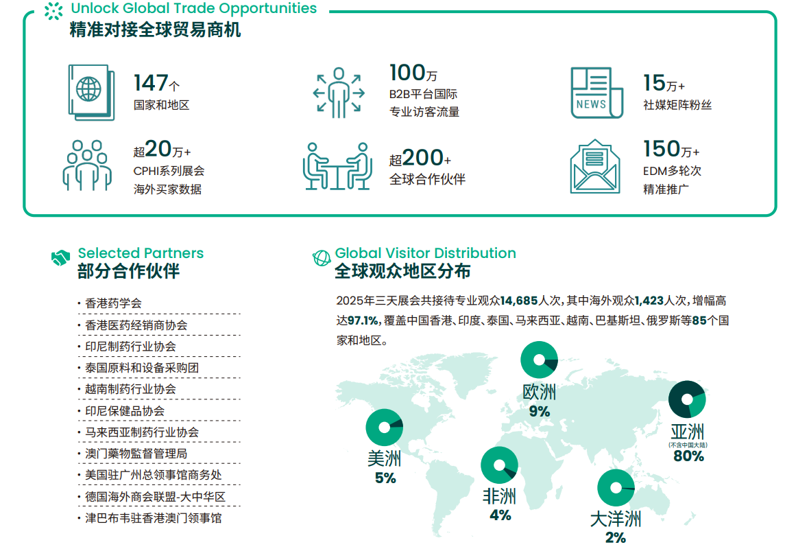 CPHI 深圳展将持续深化与多个国家及地区行业协会的深度联动,通过精准高效的跨境资源匹配,加速本土企业打通国际技术合作与市场拓展通道。同时,展会还将启动全域数字化营销方案,构建多平台社交媒体宣传矩阵,打造高质量主题论坛,全方位助力天然产物企业精准触达全球保健食品、功能食品、食品饮料、美妆及医药领域的优质买家。